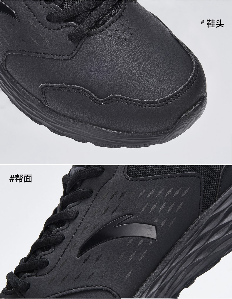 安踏男鞋皮网面运动鞋男2020夏季黑色轻...