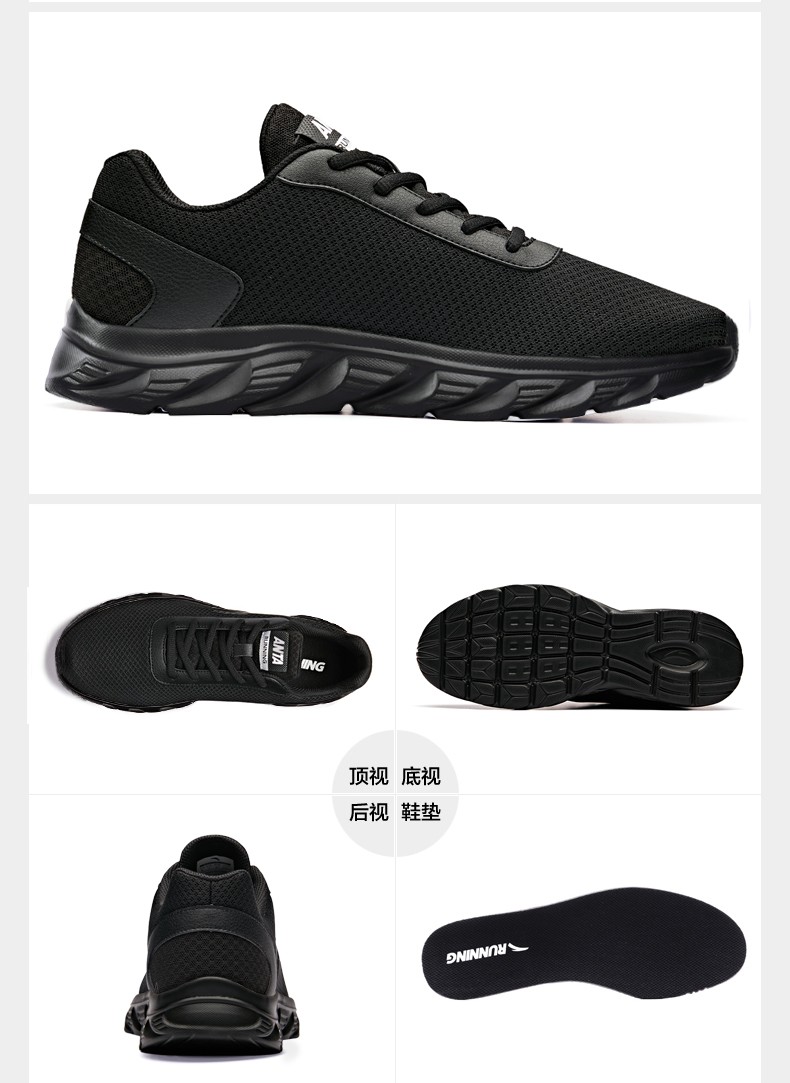 安踏男鞋皮网面运动鞋男2020夏季黑色轻便透气跑步鞋网鞋学生运动休闲鞋男士户外旅游鞋子官方店 (透气网面)黑色 男42码