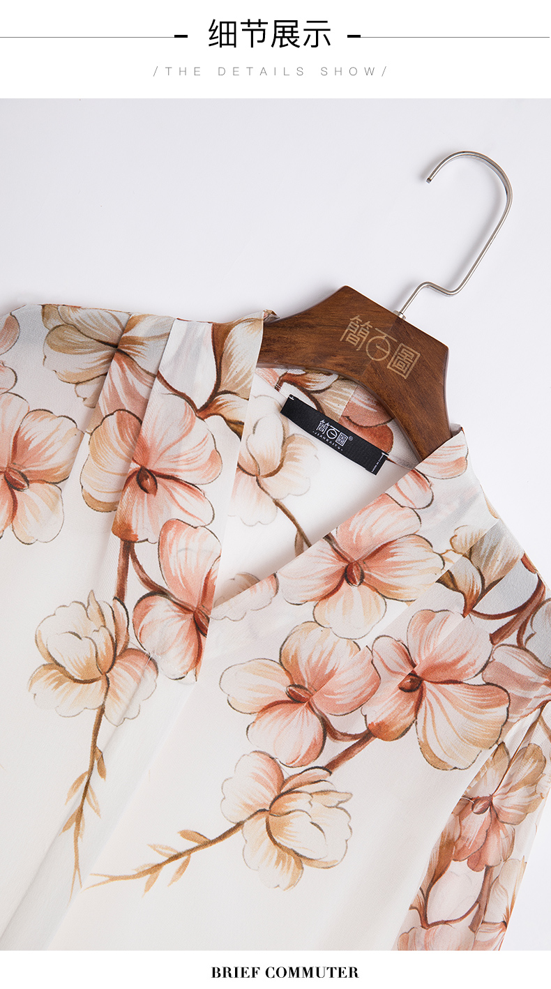 白色五分袖衬衫女2020夏季新款气质v领休闲宽松印花上衣 白色 L(建议105-115斤)